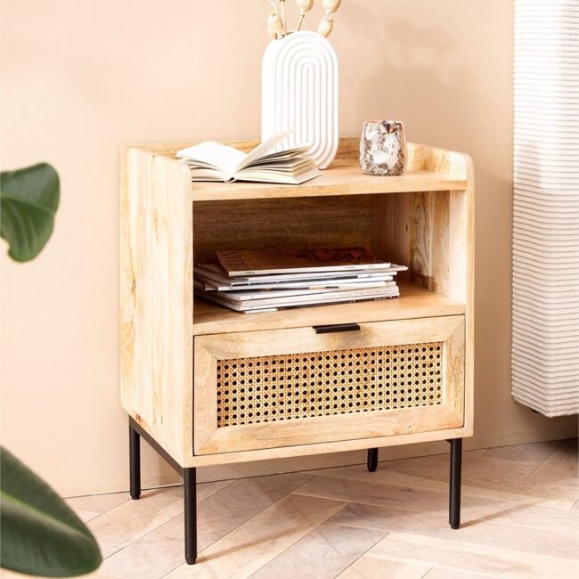 Enhance your bedroom experience with this thoughtfully designed bedside table, ideal for lamps, phones, books, or décor accessories.